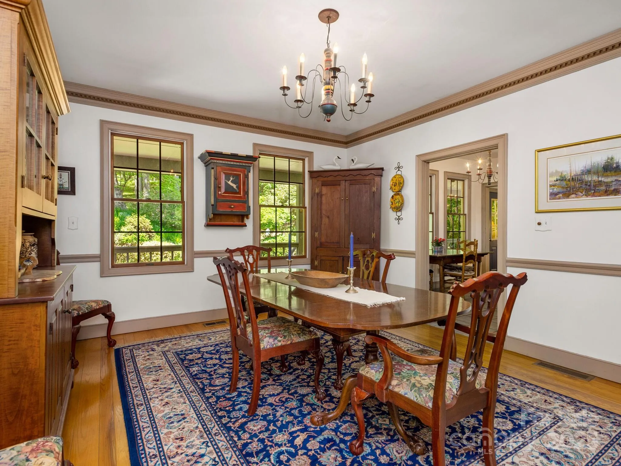 This stunning estate home sits perched upon its gentle acreage down a quiet road in Candler. Relax while breathing in the crisp mountain air. Enjoy views from your pick of covered porches. Mature plantings, specimen trees, seasonal blooms, and multiple fresh water springs will surely delight! Perhaps you will choose to catch dinner in stocked pond? You will love the large detached garage, barn, and multiple storage sheds. Inside find extra-large rooms with expansive windows, hand crafted moldings, and gleaming hardwood floors. The robust wood stove and custom built, energy efficient, Isokern fireplace are sure to keep you cozy and warm when the temperatures drop. Upstairs, there is a 546 Sq foot flex room/studio space with an outside entrance, and the daylight walk-out basement has an expansive workshop and office space. There is even a walk-in vault for valuables, whether those be collectibles or provisions. What a rare offering of a legacy property!
