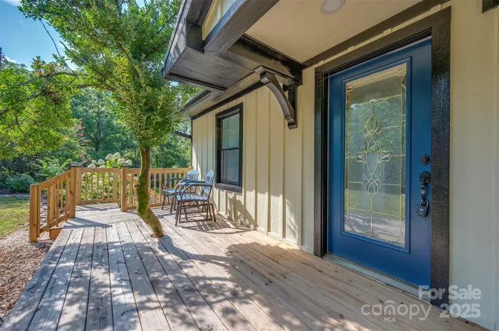 Fully Furnished Riverfront Retreat located in Lake Lure, NC! Welcome to The Lil Yellow River House! This beautifully updated home offers 220+ feet of river frontage and is being sold fully furnished—ideal as a vacation getaway or income-producing rental. Recently listed on Airbnb, the home features refinished wood floors, granite countertops, stainless steel appliances (including a range with air fryer), LE windows, recessed lighting, and a spa-style bathroom with heated floors and towel rack. A custom oak spiral staircase leads to a partially finished basement with exterior access. Enjoy river views from the deck or relax on the swing below. Additional highlights include a detached carport, freshly graveled driveway, and mature landscaping. Property is located in a flood plain.