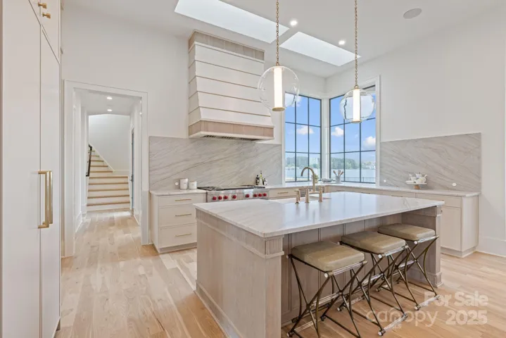 Experience luxury lakefront living at The Cape at Mattie Rose, an awe-inspiring private island enclave on Lake Norman, crafted by Grandfather Homes and Greg Perry Design. The Skyros estate offers a rare fusion of Mediterranean elegance and modern design, featuring a stucco exterior, soaring ceilings, and floor-to-ceiling windows framing 360-degree water views. This architectural masterpiece includes two distinct primary suites, smart home technology, energy-efficient systems, and a private dock. Accessible by a meandering causeway, the gated community boasts only three expansive homesites, each over 0.7 acres, with immediate lake access and boundless outdoor living. Designed to delight the eyes and refresh the soul, this home offers a retreat for mind, body, and spirit—where every day feels like a vacation and luxury meets serenity.