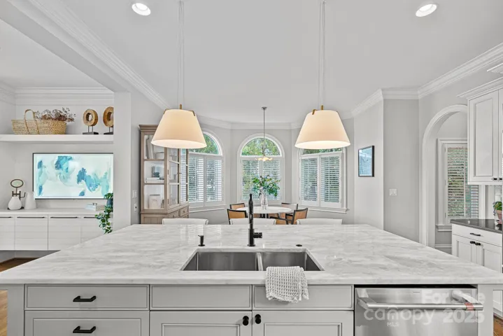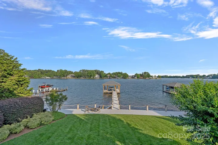 Experience designer luxury in this rare turn-key waterfront estate on one of the most coveted streets in The Peninsula. Meticulously updated and move-in ready, this 6,000+ sq ft home blends timeless elegance with modern comfort. Designed by a professional with exceptional attention to detail, it showcases stunning light fixtures and high-end finishes throughout. The open-concept kitchen flows seamlessly into a cozy family room and soaring two-story great room—ideal for entertaining and everyday living. Five spacious bedrooms and 6.5 spa-inspired baths span three beautifully finished levels. Enjoy breathtaking long-range views from modern windows, a resort-style backyard with pool, spa, outdoor kitchen, and covered patios. The walk-out basement features a guest suite, gym, and large family room. A deeded boat slip with covered dock and lift completes the ultimate Lake Norman lifestyle. Walk to the Yacht Club and minutes from The Peninsula Club.