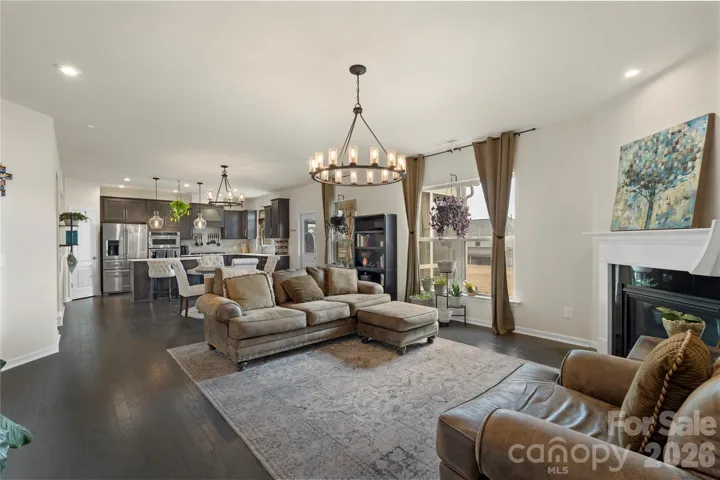 This charming and well maintained home in the desirable Queensbridge community provides a versatile and livable floor plan for all your needs! Offering 4 Bedroom, 2.5 bathrooms this home boasts hardwood flooring throughout the main level, neutral paint throughout and durable vinyl plank flooring on the upper level. You will fall in love with the open feeling of the main level complete with a Den/Sitting Room, dedicated office space, separate dining room but that is not all! The living room is filled with natural light from the oversized windows and is completed with a gas fireplace, making it the perfect spot for any season. It flows seamlessly into the breakfast area and updated kitchen with matching SS appliances, gas range, quartz counters, an eat-at island, tile backsplash, wet bar/coffee station, and dedicated pantry. On the upper level, enjoy the large loft which offers a very usable space for entertainment, hobbies, or another work area! The Primary Suite offers two walk-in closets, dual vanity and a tile surround shower. The secondary bedrooms are all very generously sized and provide their own walk-in closet as well providing ample storage, and even more versatile space! Great location with shopping, restaurants and entertainment all near by. Now is the perfect time to get into the growing Indian Land area!