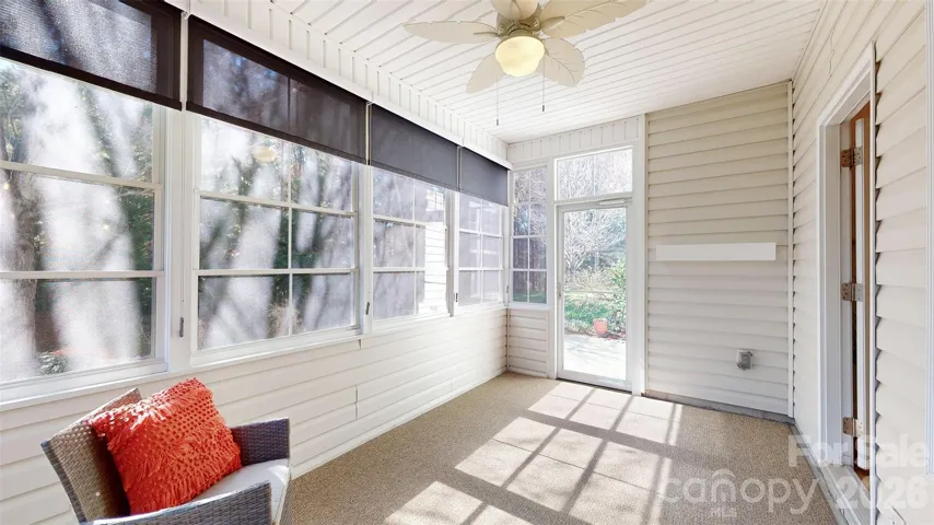 Enjoy relaxing in the serene sunroom overlooking the private, tree-lined backyard—perfect for morning coffee or quiet afternoons.